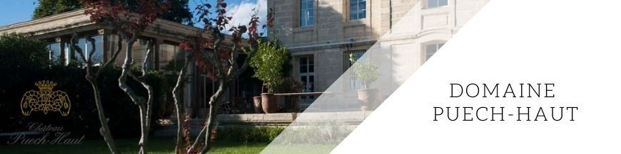 C'est lors de la construction du château que le propriétaire va retrouver une pierre avec la sculpture d'une tête de bélier, certainement issue d'une chapelle du 17ème siècle. C'est cette tête de bélier qui est encore aujourd'hui l'emblème du domaine Puech-Haut. Elle est particulièrement mise en valeur sur la bouteille de rosé prestige du domaine en verre fumée et avec la face plate.