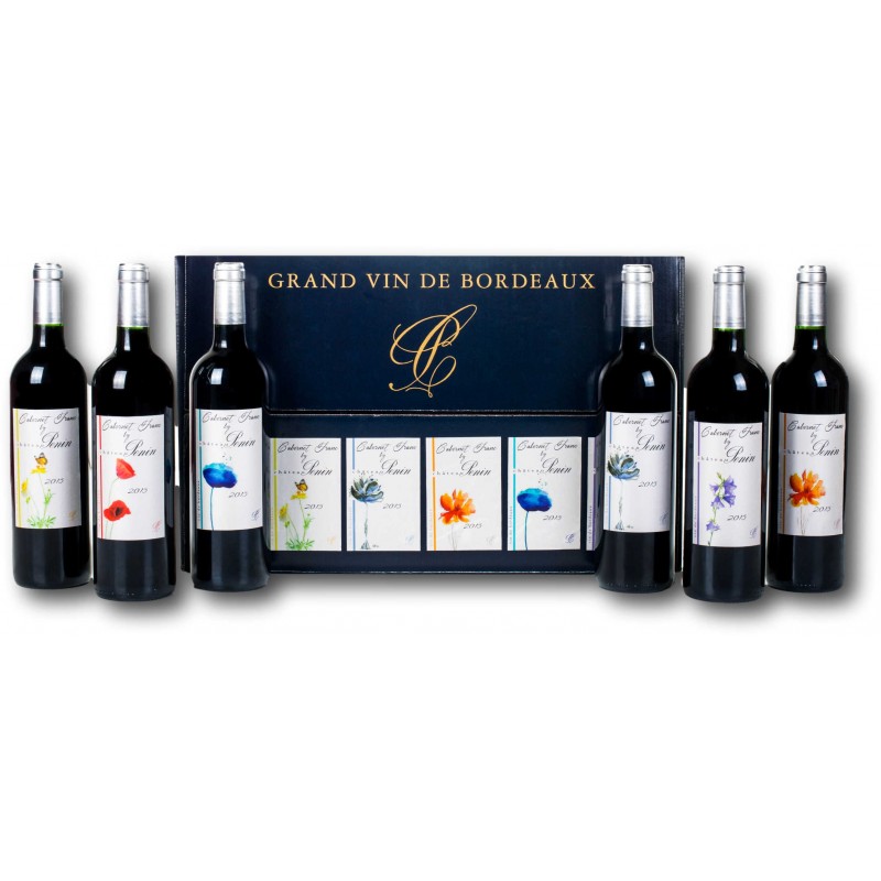 Très original, le carton est composé de 6 bouteilles avec 6 étiquettes différentes représentant chacune une fleur différente.