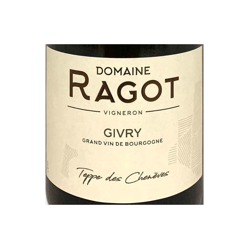 Ce Givry Blanc "Teppe des Chenèves" du Domaine RAGOT est élaboré à partir de vignes exposées plein Est à plus de 300 mètres d'altitude sur les coteaux vallonnés de la commune de GIVRY en Saône et Loire. Le domaine RAGOT est sur une culture raisonnée de la vigne.