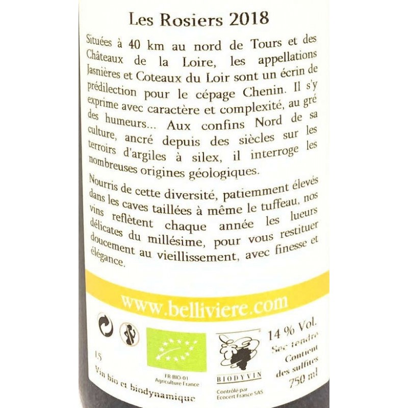 This cuvée "Les rosiers" from the Bellivière estate is a dry to semi-dry white wine where fruitiness and sweetness combine to give us an original and very pleasant wine.