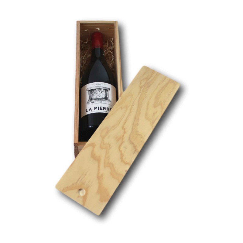 The wooden box also brings to this gift box the authentic side you expect when you offer wine.
