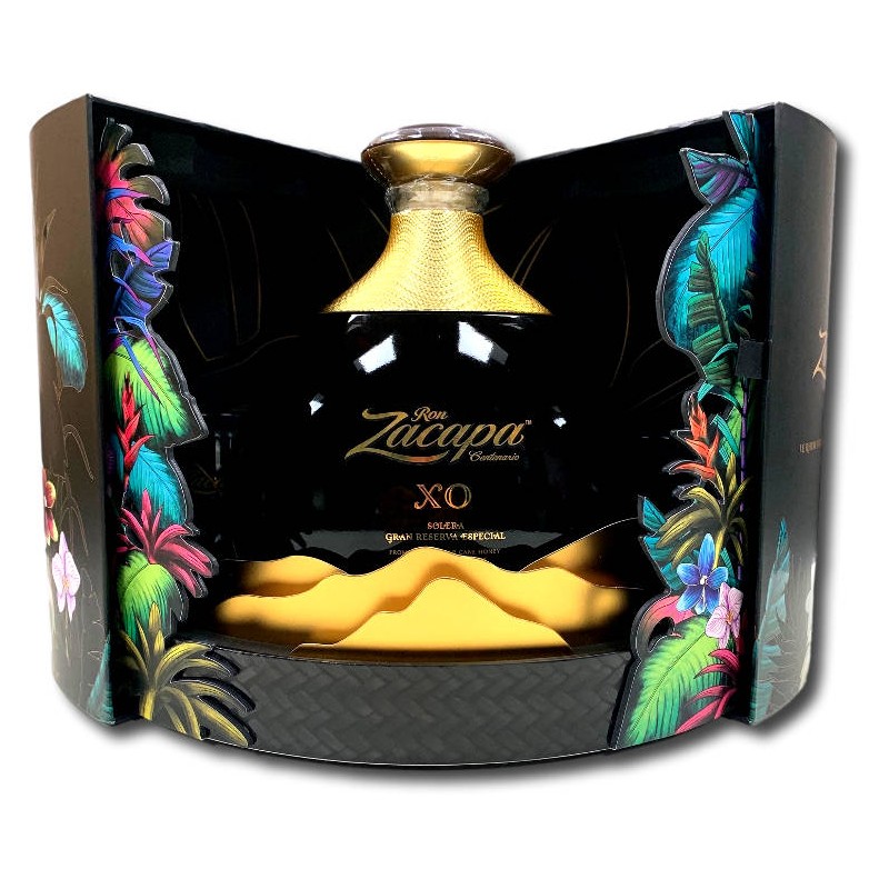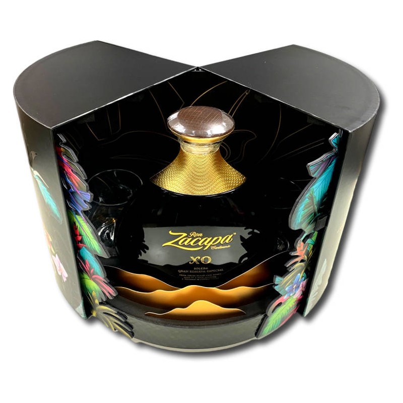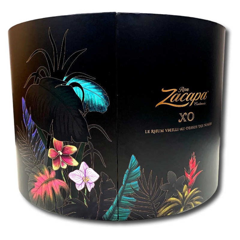 Cette version est proposée dans un impressionnant coffret, certainement le plus beau coffret de spiritueux que nous proposons à l'occasion des fêtes de fin d'année : La boite s'ouvre au milieu et laisse apparaitre la magnifique bouteille XO avec 2 verres de dégustation Zacapa sur les côté. Effet wouahou garanti !