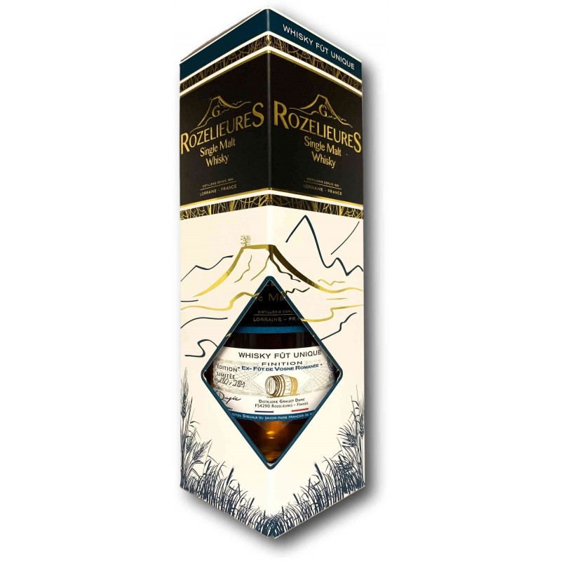 Cette édition limitée de la distillerie Rozelieures est un whisky de Lorraine élevé en fûts Bourguignons ayant contenu du Vosne-Romanée, un des plus prestigieux vins rouges de Bourgogne. C'est une édition qui est même très limitée puisqu'elle est réalisé dans un unique fût en chêne.
