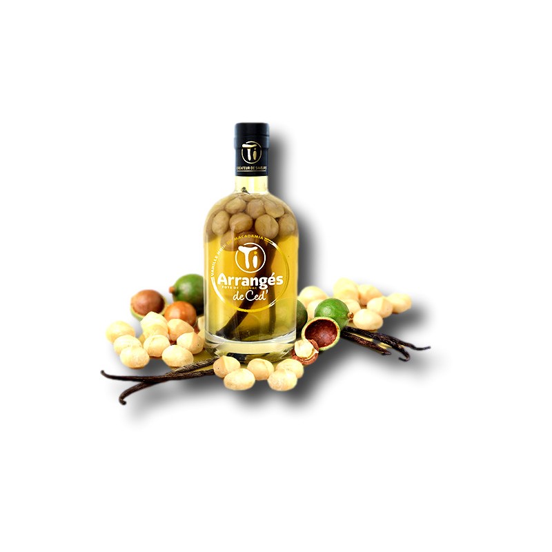 Le plus connu des rhum arrangé de Ced, la bouteille est impressionnante par la présence imposante des grosses noix de macadamia qui flottent à la surface.